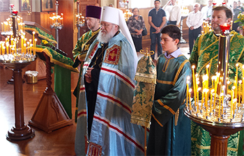 His Eminence was joined by the cathedral clergyman,S enior Protopriest George Lapardin, Protodeacon Alexander Kotliaroff and Deacon Constantine Moshegov. During vigil and Liturgy, the Cathedral Choir sang under the direction of Andrei Laptev. After Divine Liturgy, Metropolitan Hilarion addressed the worshipers with a sermon on the topic of the feast day.