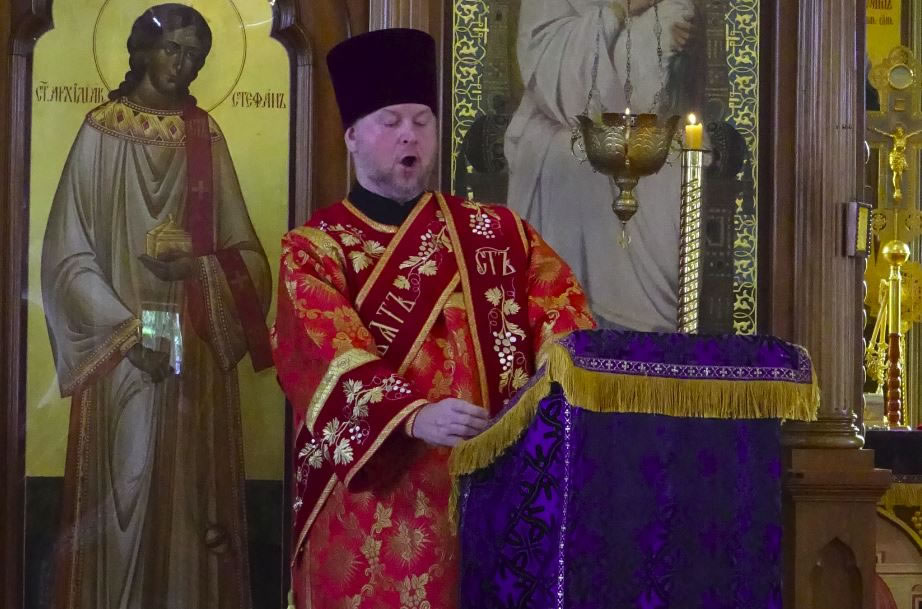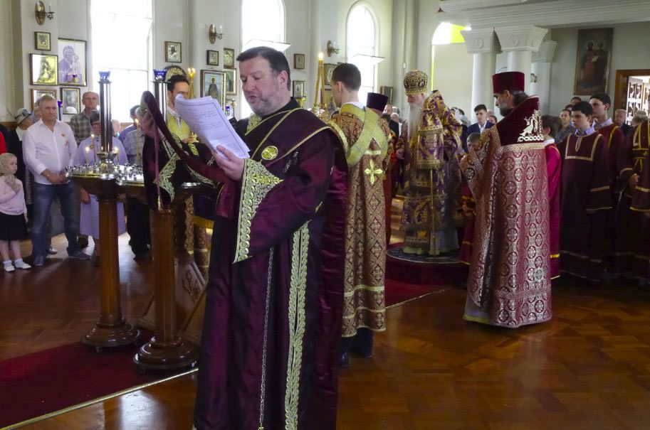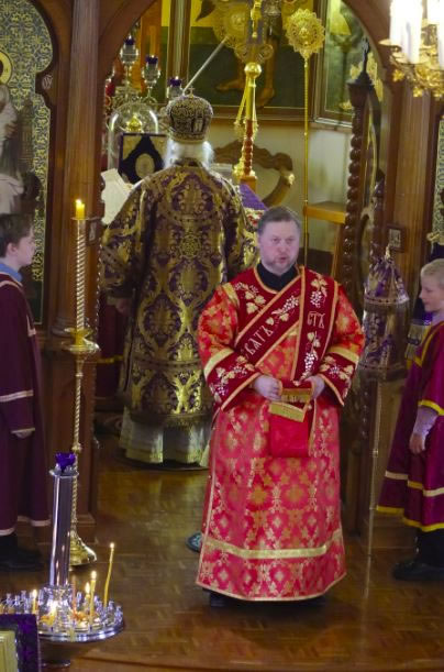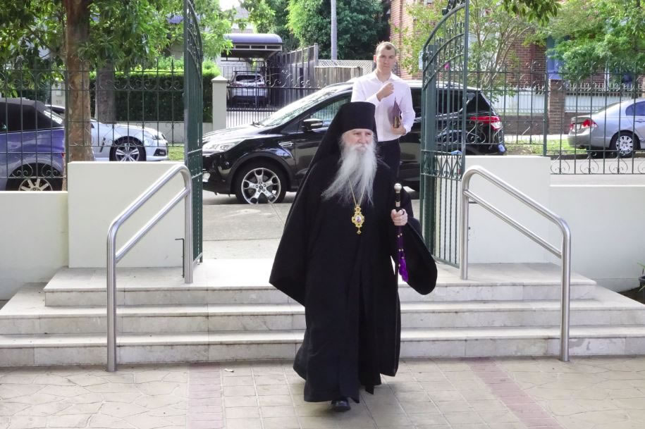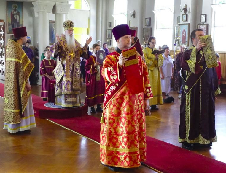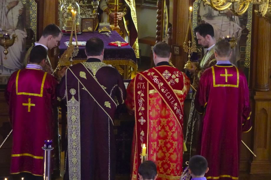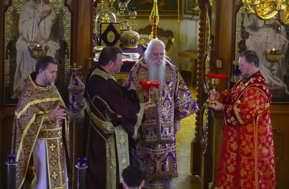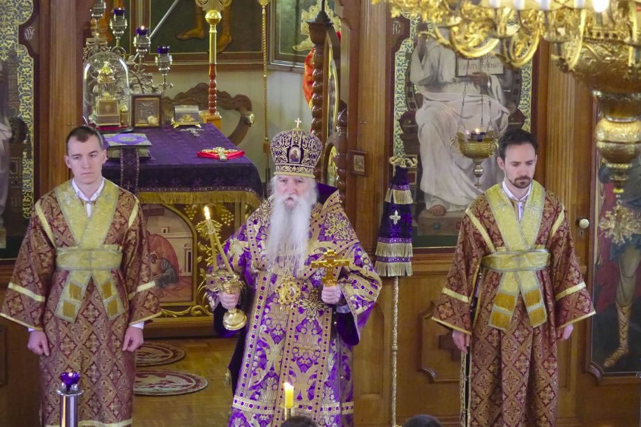 On March 20, 2016, the Sunday of the Triumph of Orthodoxy, His Grace Bishop George of Canberra celebrated Divine Liturgy and the Rite of Orthodoxy at SS Peter and Paul Cathedral in Sydney, Australia. His Grace was joined by the cathedral's clergymen, including Senior Priest, Protopriest George Lapardin, Priest Alexander Korzhenevsky, Rector of St George Church in Carleton, Protodeacon Alexander Kotlaroff and Protodeacon Constantine Moshegov, as the cathedral choir sang under the direction of Andrei Laptev. The many worshipers communed from two chalices. At the end of Liturgy, Fr Alexander intoned the Rite of Orthodoxy.