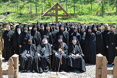 After Liturgy, the brethren all processed in order to the monastery refectory, carrying a special prosphora from the church for the Rite of the Panagia. After the luncheon, the rite was completed, during which all those present sang hymns to the Most Holy Theotokos as the prosphora was cut up and then taken around the refectory. The faithful each took a piece of the blessed bread, made a sign of the cross over the censer, and ate it.