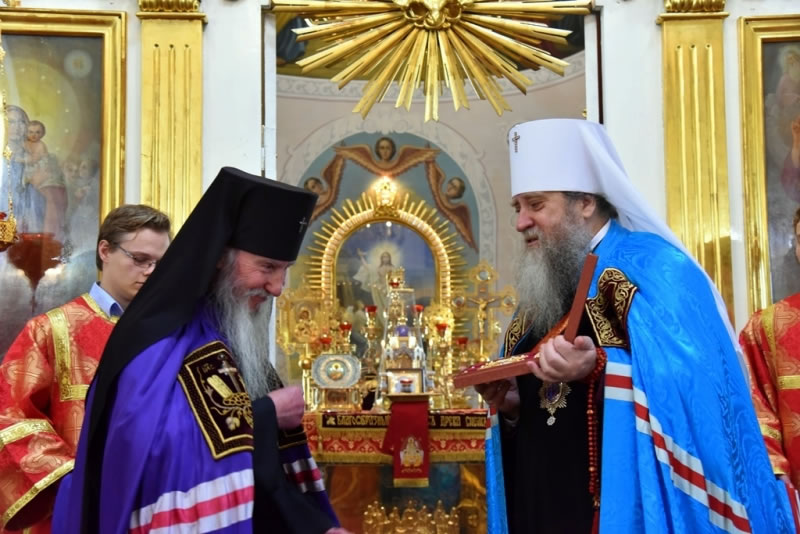 They were joined in the service by other clergymen, and the Archbishop’s Choir under the direction of Yulia Vaganova and the Orenburg Theological Seminary Choir under Alexander Romashkov sang.