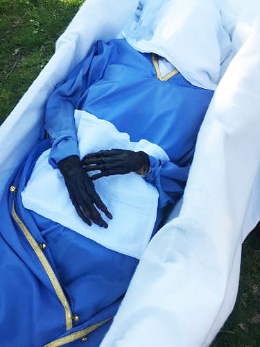 After the washing and anointing, the legs, hands and torso were all wrapped in cotton and linen, making the holy relics more easily movable. Following this process, the holy relics were temporarily vested in a stiharion until his vesting takes place before his Glorification in July 2017. His face was covered with linen, and he was returned to the temporary metal coffin and covered.