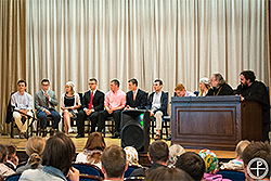 The floor was then ceded to the young Orthodox Christians from the USA of the Russian Orthodox Church Outside of Russia. Each of them talked about themselves and their paths to God. These young men and women are descendants of Russian emigres from various generations, speaking Russian with different levels of fluency, but all remembering their roots, studying Russian culture and consciously confessing the Orthodox Christian faith. A great many words of fondness were spoken of Camp NORR (the Association of Russian Explorers Outside of Russia), a summer youth organization established in 1928.