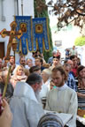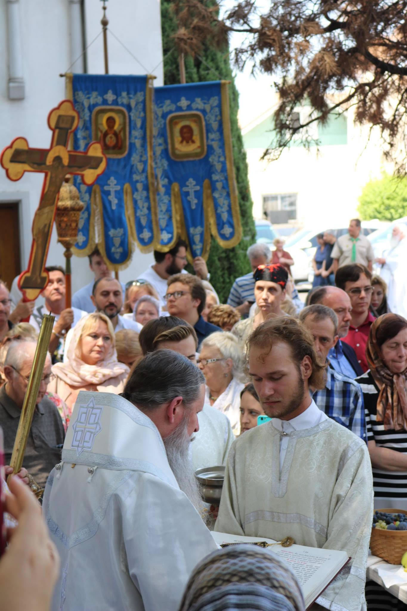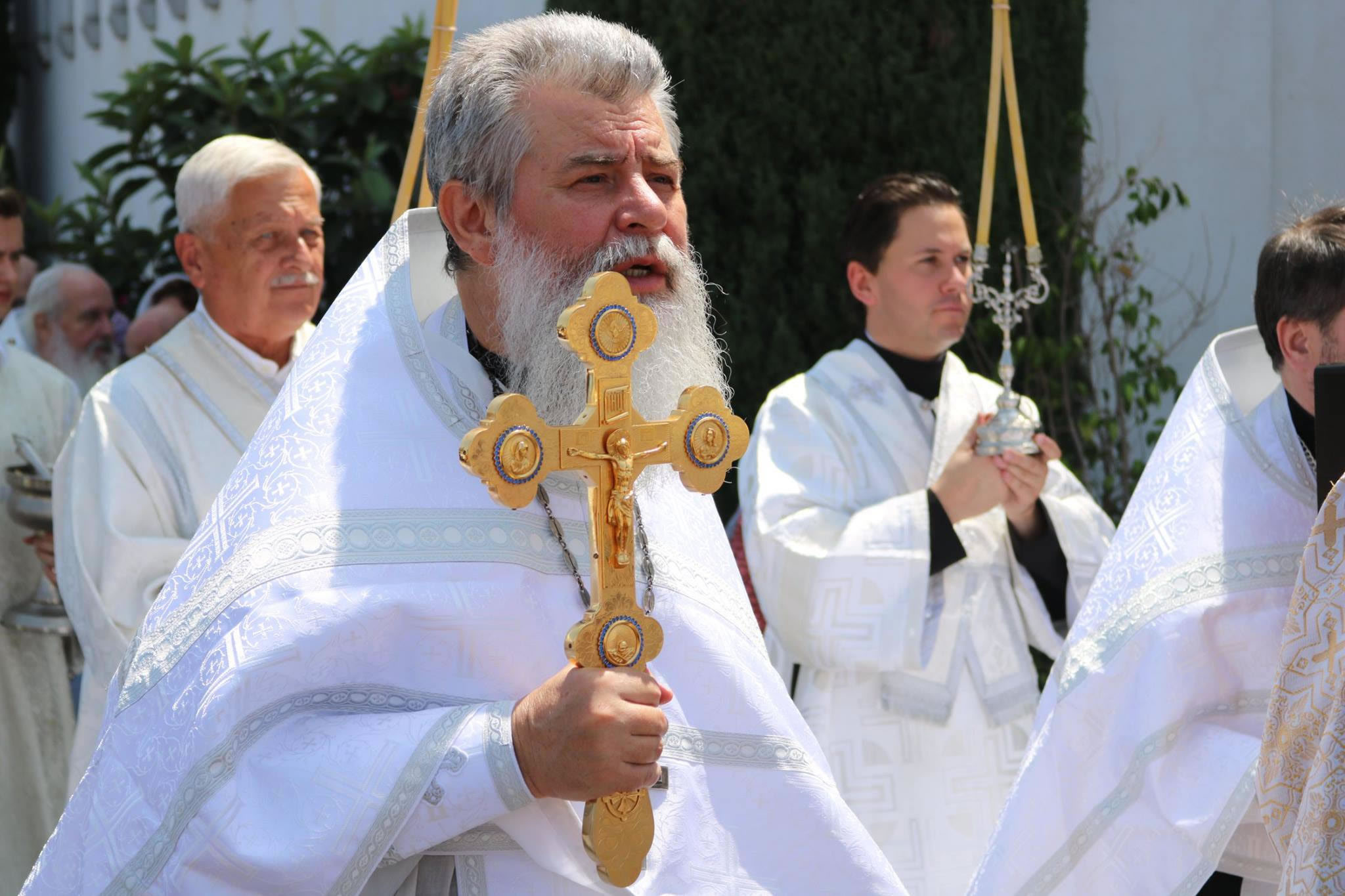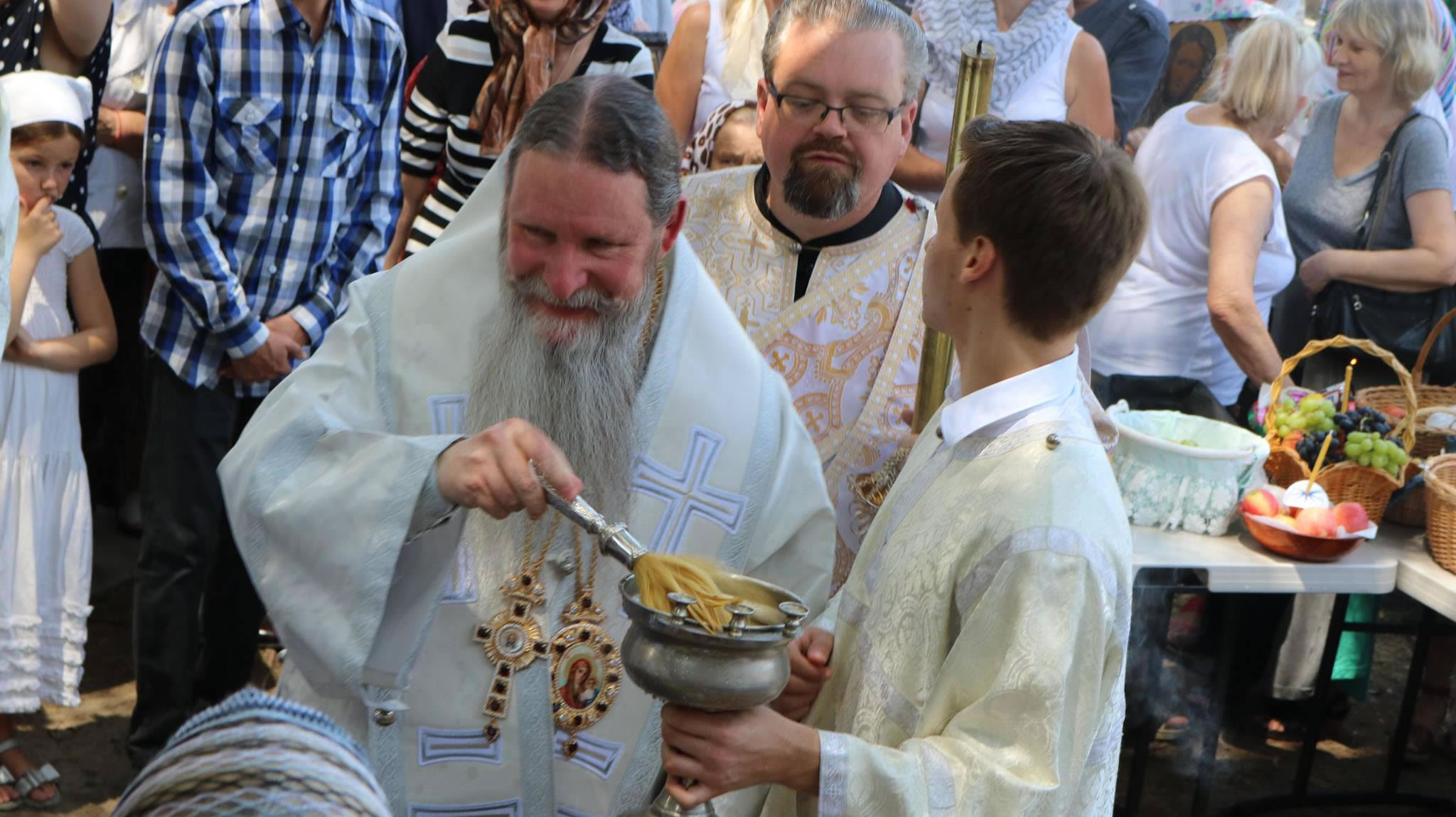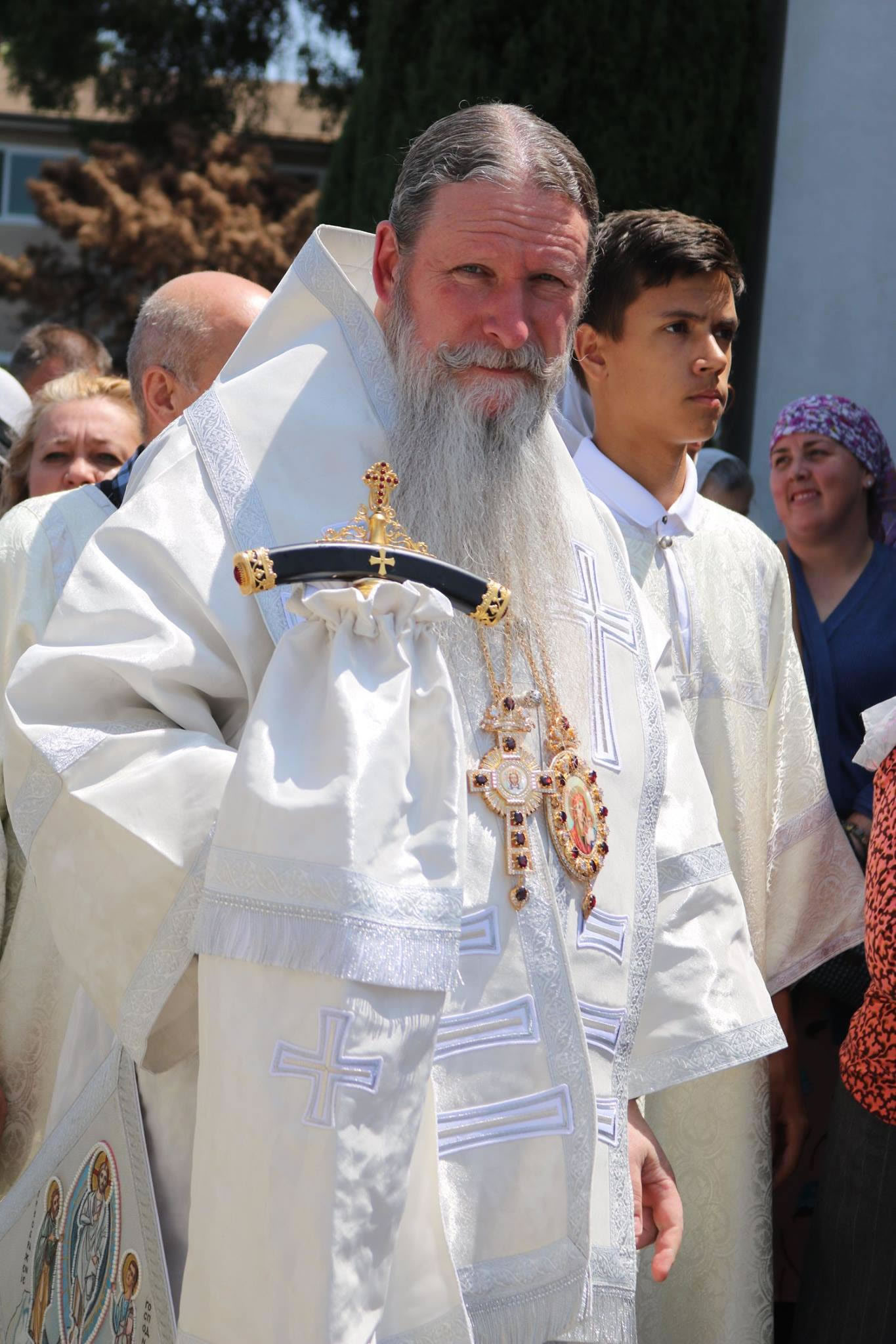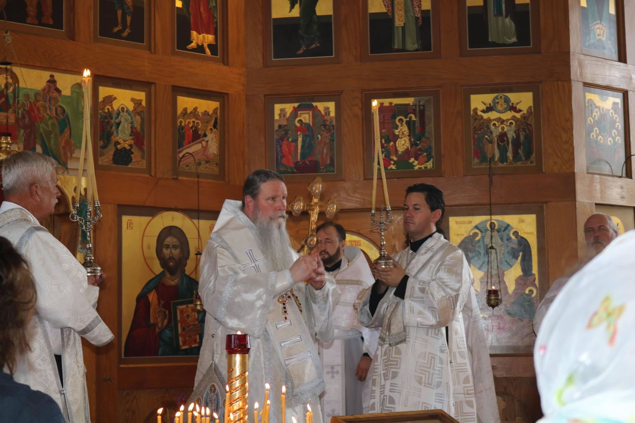 On Sunday, August 19, 2018, the feast of the Transfiguration of the Lord, His Eminence Archbishop Kyrill of San Francisco and Western America led celebrations at Holy Transfiguration Cathedral in San Francisco, CA. During a moleben and procession of the cross around the cathedral and blessing of the fruits, a memorial plaque to the centenary of the martyric death of the Russian Royal Passion-bearers was consecrated. Afterwards, the sisterhood offered a trapeza luncheon.