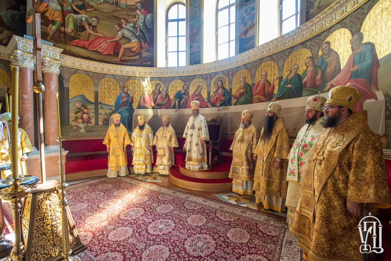 On June 9, 2019, the Sunday of the Holy Fathers of the First Ecumenical Council, His Beatitude Metropolitan Onouphry of Kiev and All Ukraine celebrated Divine Liturgy at the Kievan Lavra of the Caves. His Beatitude was joined by His Eminence Metropolitan Pavel of Vyshgorod and Chernobyl; His Eminence Archbishop Varsonofy of Vinnitsa and Barsk; His Grace Bishop Alexy of Voznesensk and Pervomaisk; His Grace Bishop Nicholas of Manhattan, Deputy Secretary of the Synod of Bishops of the Russian Orthodox Church Outside of Russia; His Grace Bishop Viktor of Baryshevsk; His Grace Bishop Sylvester of Belogorodsk, Rector of the Kievan Theological Schools, and the monastery’s brethren and visiting clergy.