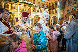 Upon conclusion of the Liturgy, Metropolitan Hilarion performed the Great Blessing of Water. After the service, a banquet was held in honor of the parish’s patronal feast.