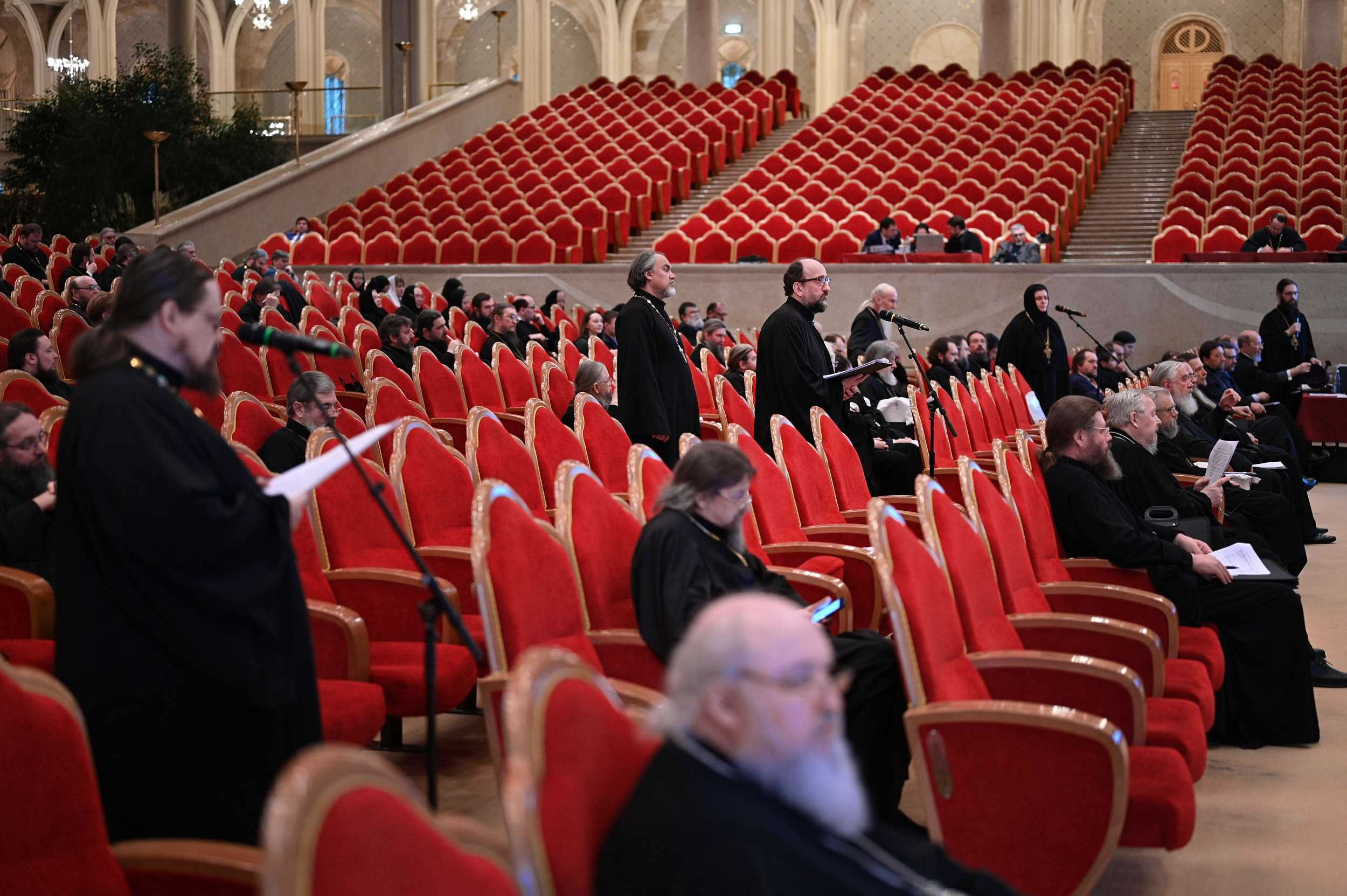 Members of the Russian Church Abroad participate in a plenary session of the Inter-Council Presence of the Russian Orthodox Church