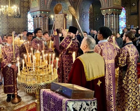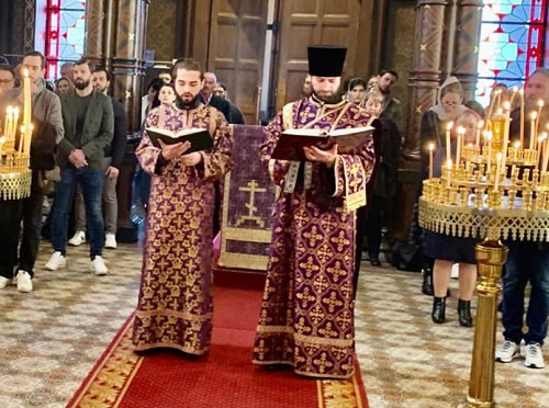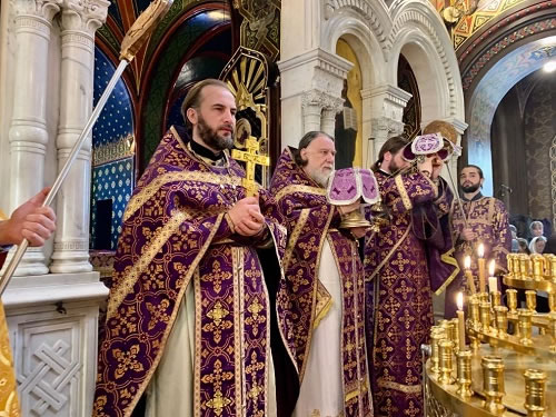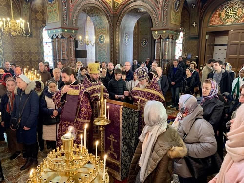At the beginning of the spiritual spring, Great Lent, which began on Monday, March 2, 2020, the regular cycle of services commenced at the Elevation of the Holy Cross Cathedral in Geneva, Switzerland. Despite the workday, many parishioners were in attendance at the services, as Protopriest Pavel Tsvetkoff read the Great Canon of Repentance of St Andrew of Crete. After grand compline, litanies for the dead were performed.