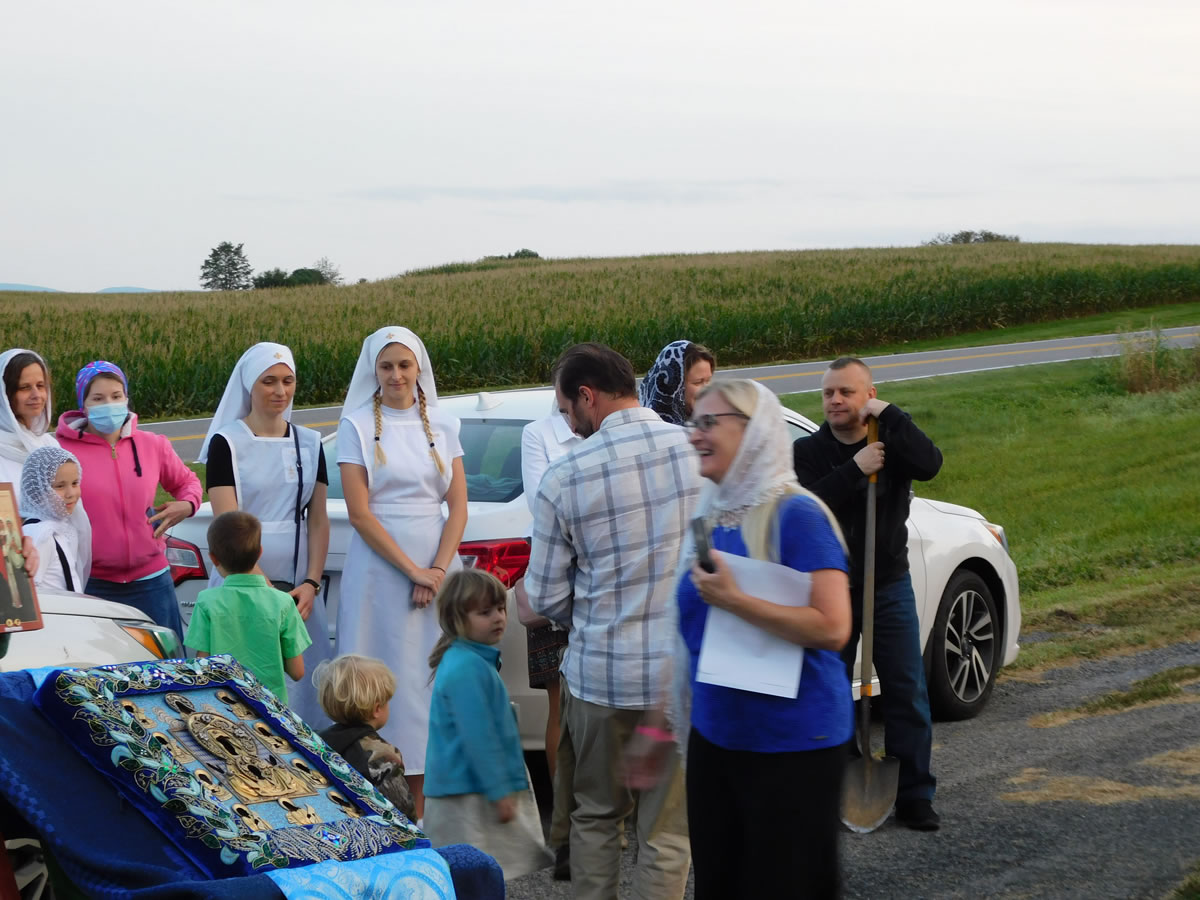 The community purchased 7.9 acres just outside of town and have started to build His church. Ground was broken with the blessing of Bishop Nicholas of Manhattan, Vicar of the Eastern American Diocese, accompanied by the Protectress of the Russian Diaspora ? the Kursk Root Icon of the Mother of God “of the Sign,” on September 14, 2020, on the day of the Church New Year. Bishop Nicholas quenched the dry ground with holy water to make this dirt rich in spiritual fruit. His Grace then drove a shovel blade deep into the soil and blessed the new foundation of the church. On October 6, the excavators moved in and started to carve the new church out of the rich farmland.