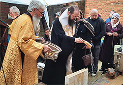 Bishop Irenei of London and Western Europe blesses the cornerstone of a new chapel in England