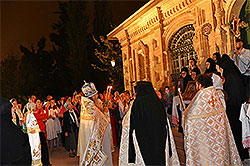 Under the sound of the bells of the Church of the Resurrection of the Lord, where the Holy Sepulcher of the Lord is, not far from the Russian monastery of St Mary Magdalene, the sisters and worshipers of Gethsemane church left the temple in a procession with the singing of “Thy Resurrection, Christ the Savior” on the holy night of Holy Pascha, adding the beautiful ringing of their own bells.