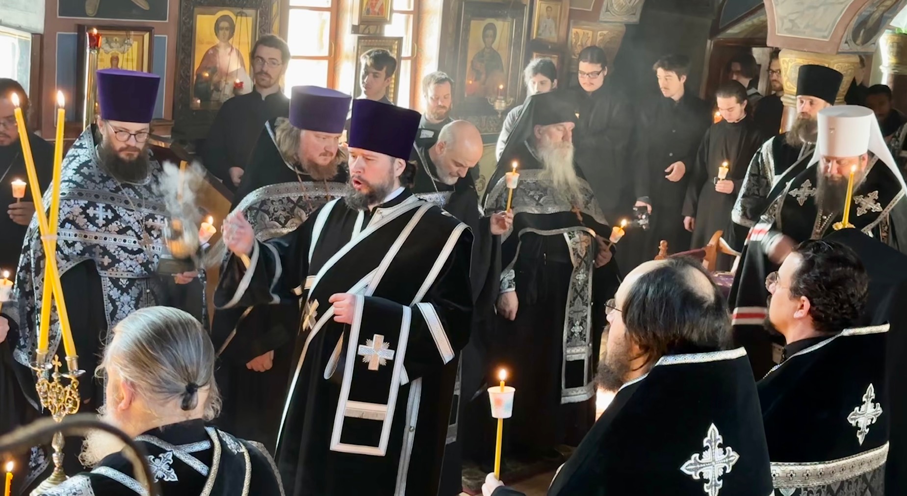 After a luncheon prepared by the monastic brethren, a pannikhida service was performed at Holy Trinity Cathedral, led by Metropolitan Nicholas along with the monastery clergymen, teachers of Holy Trinity Seminary and visiting clerics. Bishop Luke prayed in the altar. At the end of the service, the First Hierarch noted that performing memorial services for the dead always brings him consolation, and called upon everyone not to forget Metropolitan Laurus and the late brothers of the monastery, to visit their graves, pray for their repose, study their biographies and legacy and strive to emulate their example, preserving their memory with grateful love. His Eminence then proceeded to the crypt of the late Metropolitan Laurus, venerated the coffin and prayed for his repose.