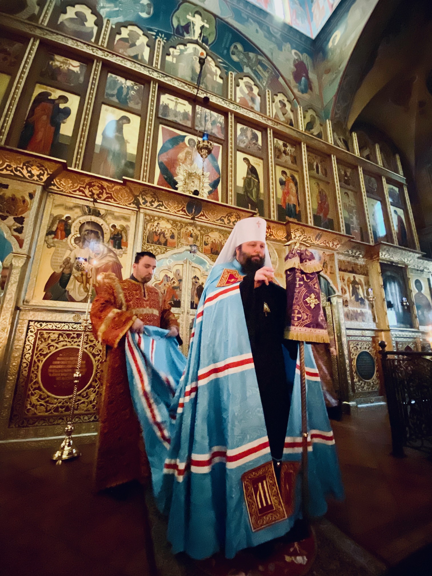 On March 25-27, the First Hierarch visited St John the Baptist Cathedral in Washington, DC, where he performed all-night vigil and celebrated the Divine Liturgy of St Basil the Great. That evening Vladyka Nicholas led the rite of Holy Unction along with the cathedral’s Rector Archpriest Victor Potapov, his clergymen and visiting clerics.