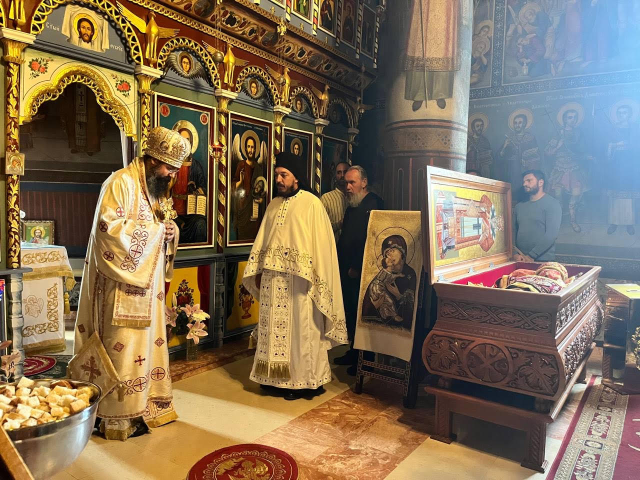 On Sunday, August 6, His Grace served at the Lelic Monastery near Belgrade, where the relics of St Nicholas (Velimirovic) are kept, and then visited the Celije Monastery, where St Justin (Popovic) had served for decades, and met with His Grace Bishop Hesychius of Valjevo, the ruling bishop of this region.