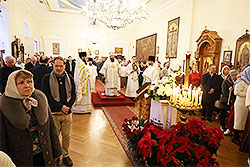 At the festal Divine Liturgy on Sunday, January 7, concelebrating with His Eminence were Fr Andrei, Archpriest Seraphim Chemodakov (cathedral cleric), Priest Anatoly Revitskyy, Protodeacon Nicolas Mokhoff and Protodeacon Serge Arlievsky (cathedral clerics), and Fr Panteleimon.