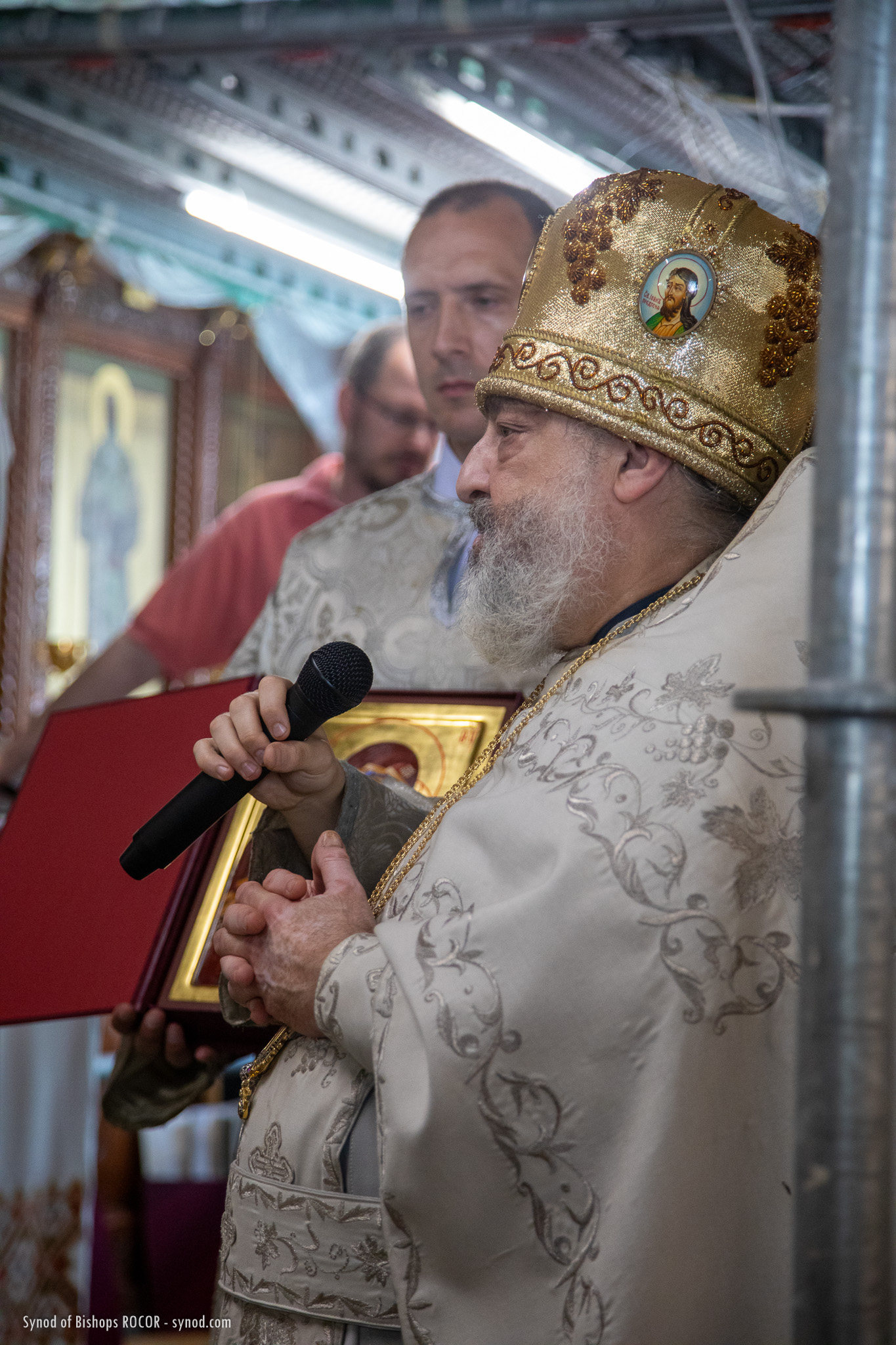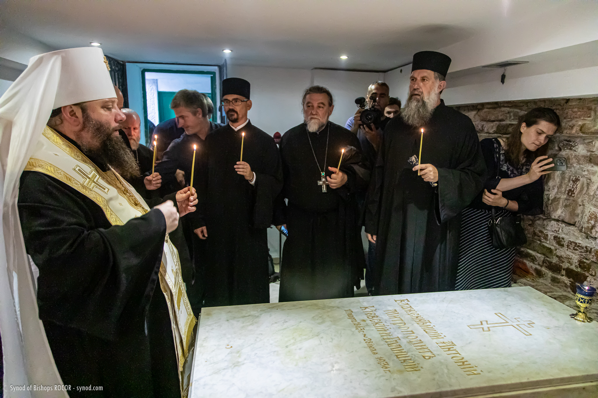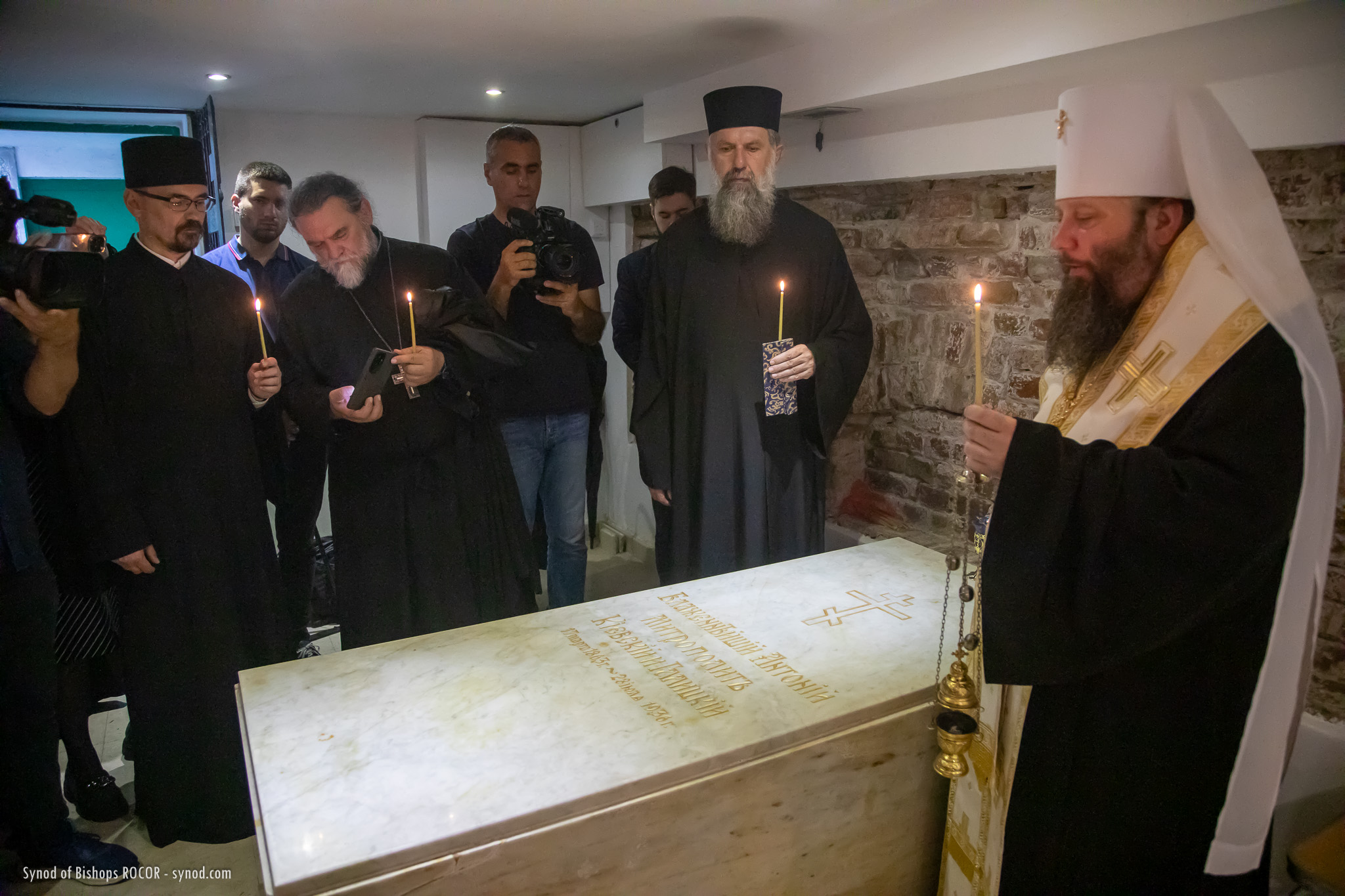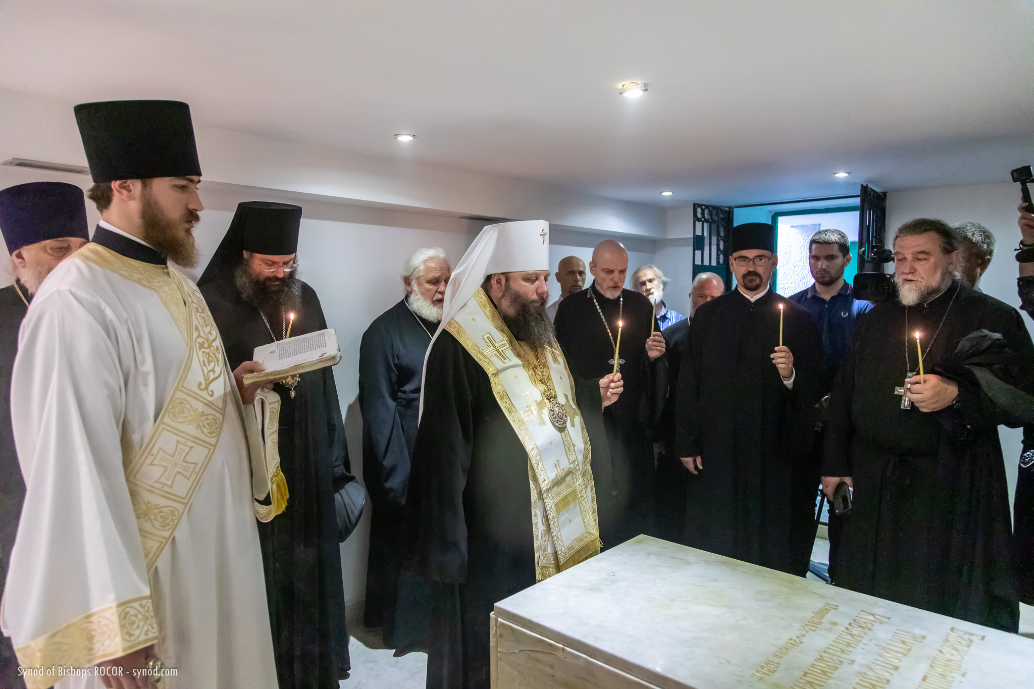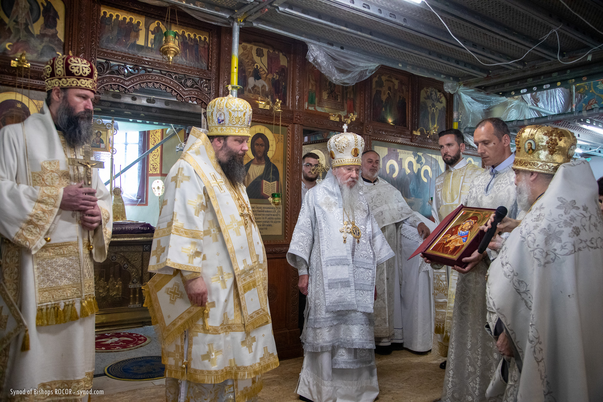 Metropolitan Nicholas is accompanied by members of the Synod of Bishops: His Eminence Metropolitan Mark of Berlin and Germany, His Eminence Archbishop Gabriel of Montreal and Canada, His Eminence Archbishop Peter of Chicago and Mid-America, His Grace Bishop Irenei of London and Western Europe, His Grace Bishop Job of Stuttgart, as well as Protopriest Serafim Gan, Chancellor of the Synod of Bishops and Secretary of the First Hierarch of ROCOR, as well as Archpriest Luka Novakovic and Archpriest Ljubo Milosevic, cleric of the Eastern American Diocese, Secretary of the Diocese of Mid-America, Archpriest Gregory Joyce, and Reader George Konev.