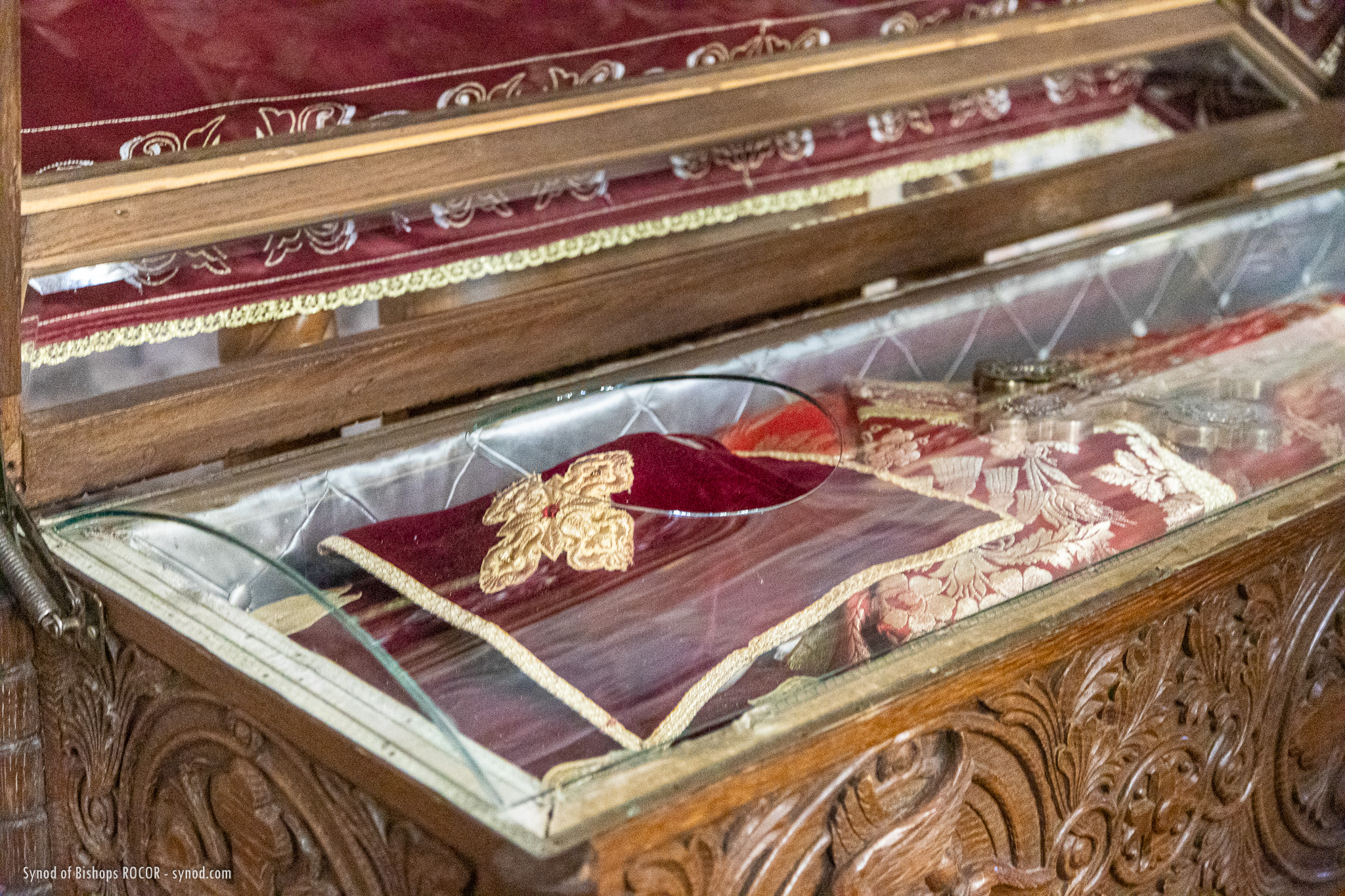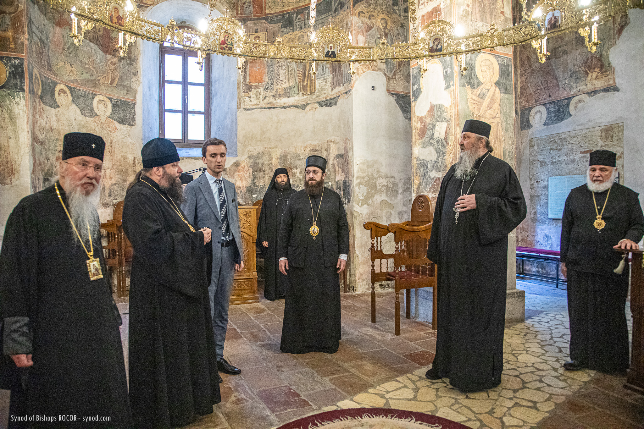 That evening, the delegation of the Russian Church Abroad, headed by Metropolitan Nicholas, visited the monasteries of Grgeteg and Novo-Hopovo, at one time important spiritual centers of the Russian diaspora. At the latter monastery, the delegates venerated the relics of Holy Great Martyr Theodore the Tyro and the grave of Abbess Ekaterina (Efimovskaya) of blessed memory, the founder of the Convent of the Nativity of the Most-Holy Mother of God in Lesna.