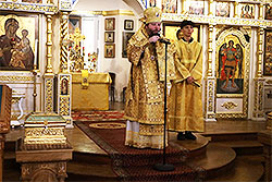 The next day, October 7, the feast day of St Thecla, Equal-to-the-Apostles, His Eminence celebrated Divine Liturgy at the Church of the same name in Wheaton, near Washington, DC. Here, His Eminence congratulated the rector, Archpriest John Johnson, and the parishioners on their patronal feast, wishing them many mercies and blessings from God.