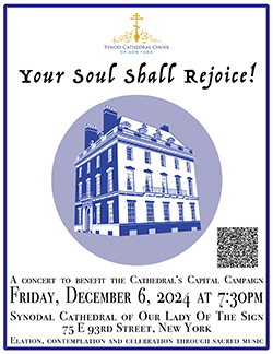 On Friday, December 6, 2024, a benefit concert of the Synodal Choir will be held for the renovation of the residence of the Kursk-Root Icon of the Mother of God "of the Sign" in New York City. The concert is dedicated to the tenth anniversary of the archpastoral service of the First Hierarch of the Russian Orthodox Church Outside of Russia.
