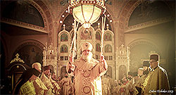 Celebrating with the Most Reverend Daniel, Archbishop of Chicago and the Midwest (OCA) was a host of clerics from the Orthodox Church in America and the Russian Orthodox Church Outside of Russia. The service was sung antiphonally between the cathedral choirs of Holy Trinity directed by Philip Sokoloff and the Holy Virgin Protection cathedral directed by Michael Gill.