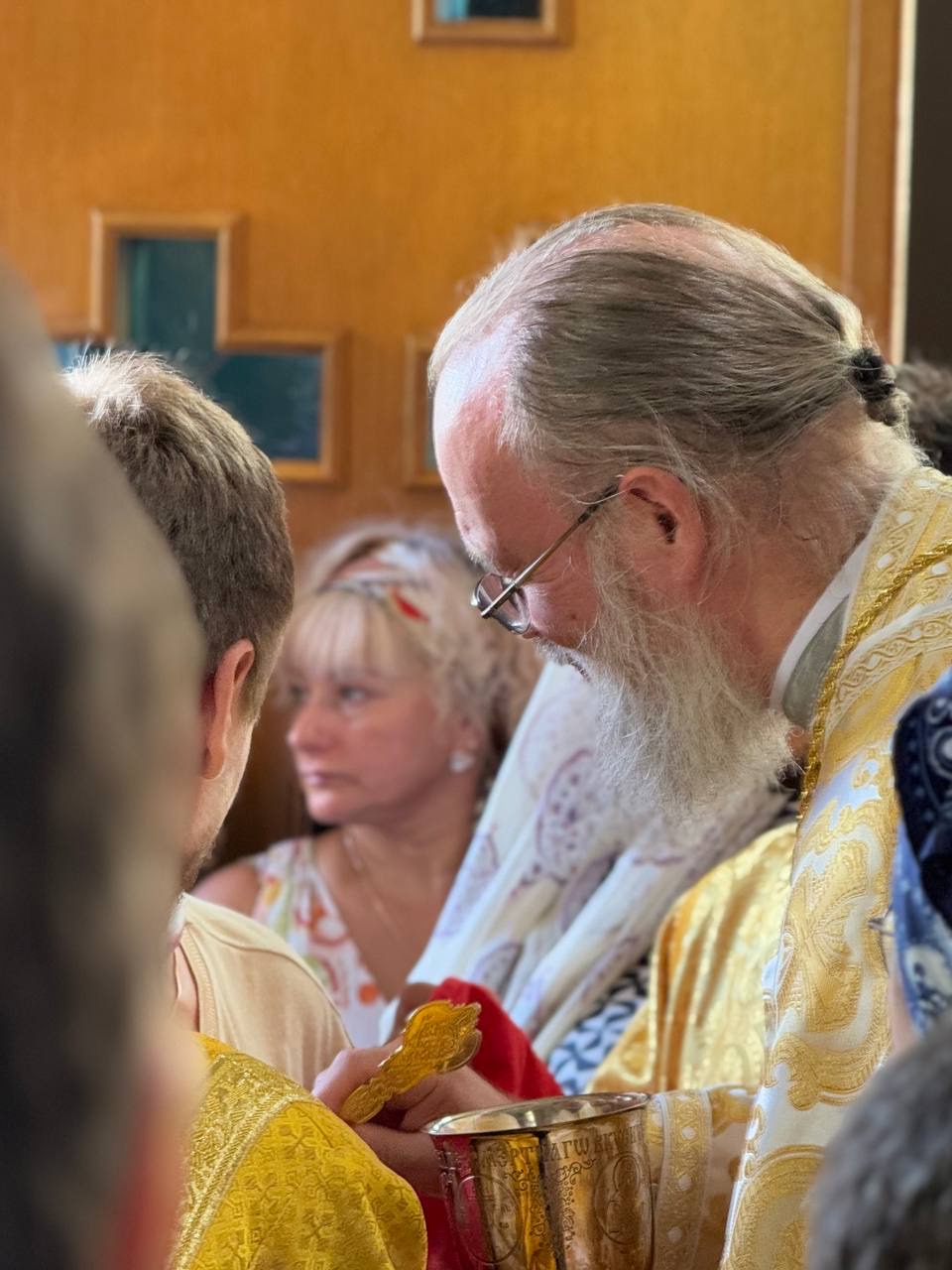 The solemn all-night vigil on the eve of the feast was beautifully performed by the parish choir under the direction of Mother Veronica, after which Bishop Irenei shared a meal with the local clergy, members of the parish council, and other representatives of the parish administration. The next day, after the hierarchical greeting with bread and salt, a solemn Divine Liturgy in honor of the Holy Apostles was celebrated in the magnificent Luxembourg church — a gift to the faithful from the late Archpriest Sergei Poukh and his devoted widow, Matushka Emilia. Within these beautiful walls of the church, the archpastor and clergy led the prayers of the people of God and brought everyone to the holy communion of the Divine Mysteries of Christ.