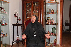 � A person goes to a monastery to save his soul. The best option is to leave the world, to escape the temptations of daily life which restrain the person from a full spiritual life. But how is this done? A person devotes his will to the will of the Lord and lives in obedience. No matter what his obedience, if he fulfills his duty conscientiously, he will be saved. Here in Jerusalem, our obedience is to serve the pilgrims, to serve the children in the Bethany school. This is very difficult. This is not like living in the wilderness. But here, the monasteries exist for the sake of the mission, for the sake of pilgrims, for the sake of the Holy Land. Talk to the elder nuns of Bethany, Sister Martha, the school's director, to Sister Makrina, an icon-painter and restorer--they are true monastics, though they live among people. We must receive all travelers, as Abraham did. He welcomed strangers, and the Lord blessed him. Our duty is to help people visit and pray at holy sites.