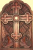 Our Cathedral has a part of the True Cross of the Lord, though it is a very small part. It hails from the Holy City of Jerusalem, from the very reliquary where a part of the Cross is found. The reliquary of the True Cross was seized when the Persians occupied Jerusalem in the year 614. In 624, the Byzantine Emperor Heracles defeated the Persians and returned the reliquary to Jerusalem, where it has remained ever since. In 2002, Archbishop Mark received this tiny piece of the Cross of the Lord from the Jerusalem Patriarchate, which had fallen off while the reliquary was being cleaned. This piece is set in wax and kept under glass in the center of a carved cross (see photo).