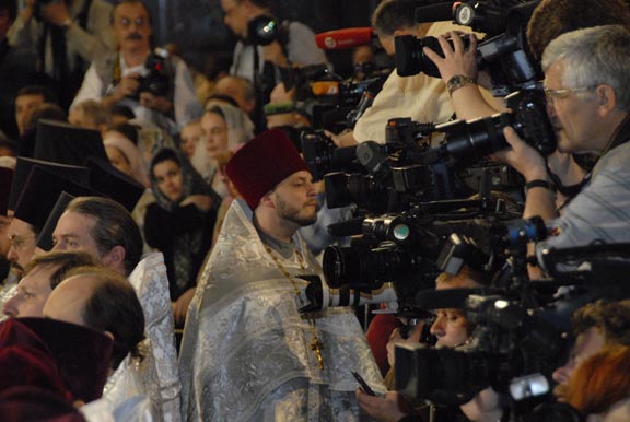 “Joy fills our hearts,” said His Holiness, “An historic event has taken place, which we have awaited for many years. The unity of the Church is restored. This ceremony is precious for the Church, as she gathers her children together, it is precious for our entire people. Church division is being overcome, overcome also is the conflict within society inherited from the days of the revolution. The Church is being strengthened—our Fatherland, too, is being reborn.”