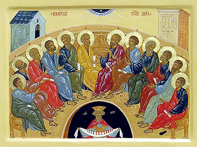 Ныне последнiй торжественный праздник - последний день молитвы дерзновенной - без преклонения колен, и первым - коленопреклонения. Мы с воскресшим Христом торжествовали победу над смертью и над грехом. Но лично каждый из нас еще не победил в себе греха и нам предстоит подвиг, борьба ради него и послал Господь Духа Святого на землю.