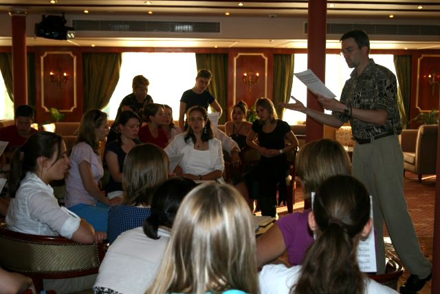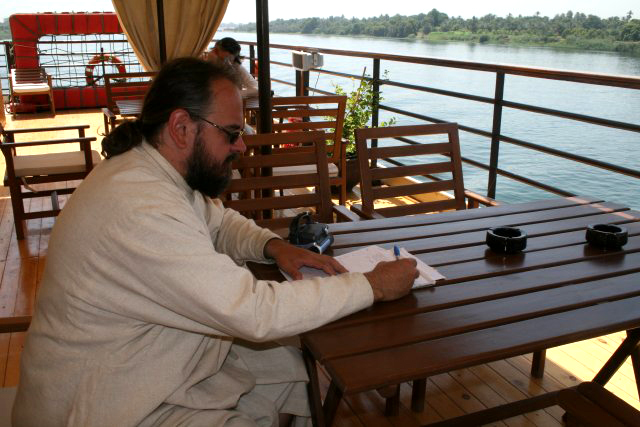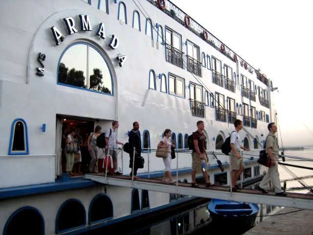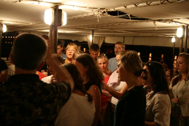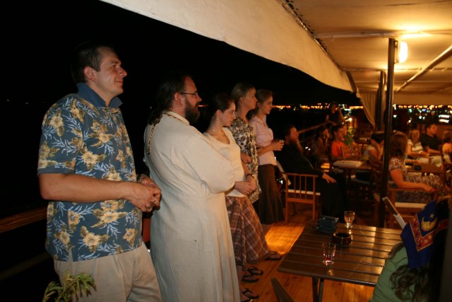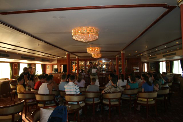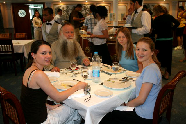 On Thursday, June 28, the young participants of the pilgrimage “In the Footsteps of Moses” traveled on the Nile River to northern Egypt, from where they soon headed for Mount Sinai. On the cruise ship, His Grace Bishop Peter of Cleveland held discussions with the pilgrims on Holy Scripture, the history of the Church and St John (Maximovich) of Shanghai and San Francisco, for whom His Grace served as cell-attendant in the 1960's. Choir rehearsals were also held on the vessel under the direction of Michael Gill, Director of the Cathedral Choir of Holy Virgin Protection Cathedral in Chicago. God willing, the youth choir will sing during divine services they attend on their pilgrimage. On the eve of the feast day of St John, Bishop Peter performed a moleben before the saint's icon.