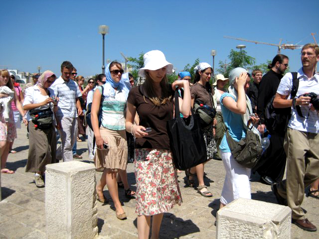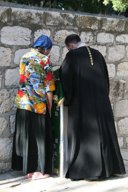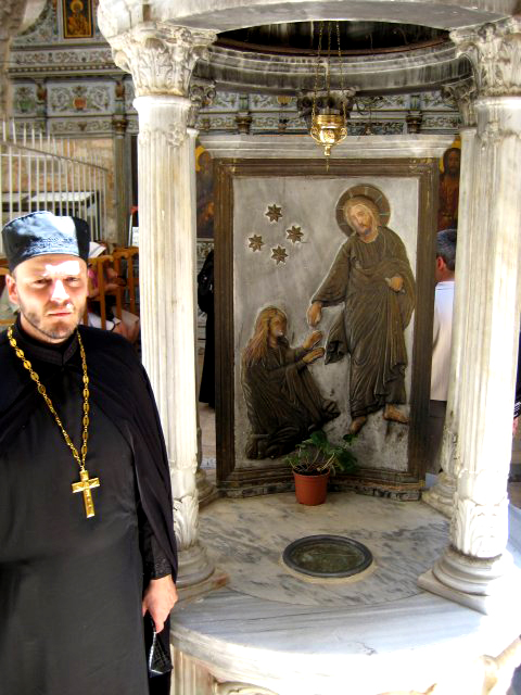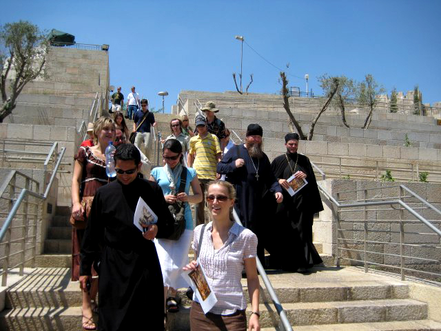 On Friday, July 6, the pilgrims of the Russian Orthodox Church Outside of Russia, led by His Grace Bishop Peter of Cleveland, prayed at the Life-bearing Sepulcher of the Lord and Golgotha, and then headed for the site of the appearance of the Resurrected Christ to St Mary Magdalene, E qual-to-the-Apostles. The pilgrims venerated the relics and icons of the churches in the area and heard a profound sermon given by His Grace. They then went to the “Russian Excavations.”