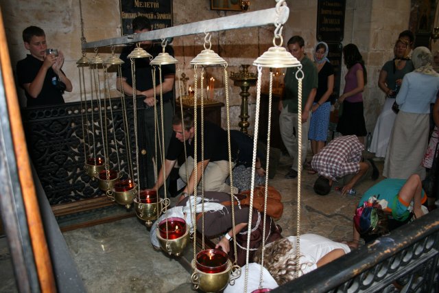 Russian clergymen from the Convent of St Mary Magdalene in Gethsemane come to this site on Great Thursday evening, after the reading of the 12 Gospels, singing and bearing candles. They are joined by the Russian residents of the Holy City, and a Passion service is conducted there on the day when the Church remembers the world-saving Passions of Her Chief, on the very site where He proceeded to Golgotha under the weight of the Cross. The “Excavations” church is served by the clergymen of the Russian Ecclesiastical Mission (Russian Church Abroad).