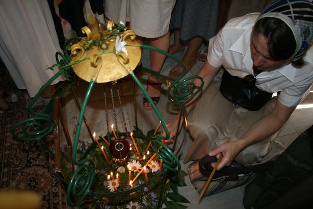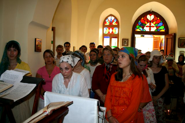 On the evening of July 6, the pilgrims prayed during all-night vigil on the eve of the Nativity of John the Baptist at Ascension of the Lord Convent on the Mount of Olives. The most noteworthy moment of this first day in Jerusalem was the singing by the young choir of Paschal prayers at the Sepulcher of the Lord, performed with piety, tears, and commemoration of their relatives and friends.