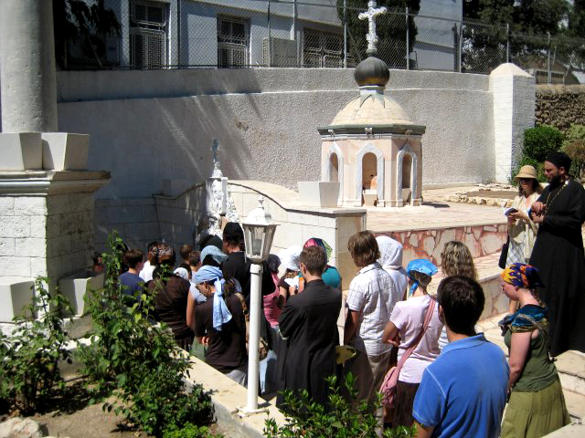 Later that day, the pilgrims visited St Peter Monastery in Jaffa and the tomb of Holy Great Martyr George in Lydda. Returning to Jerusalem, the pilgrims visited Holy Trinity Cathedral and the Russian Ecclesiastical Mission of the Moscow Patriarchate. That evening, Protopriest Gabriel Makarov and Priest Serafim Gan held a discussion with the young pilgrims.