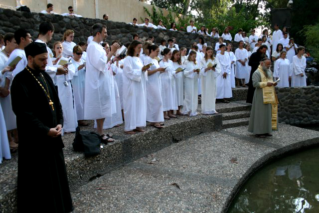 On July 13, 2007, the Synaxis of the Twelve Apostles, the pilgrims of the Russian Orthodox Church Outside of Russia, headed by His Grace Bishop Peter of Cleveland, prayed during the great consecration of the waters of the Jordan River, after which all the pilgrims immersed themselves in the river as they sang the troparion to the Epiphany of the Lord.