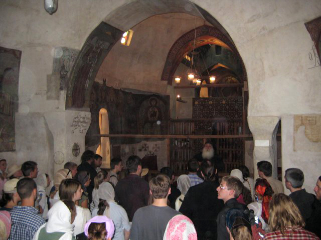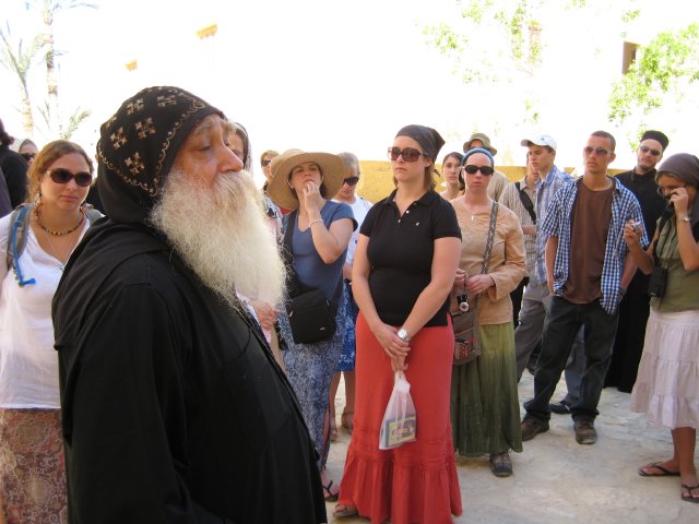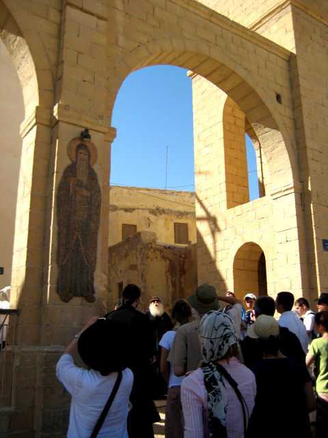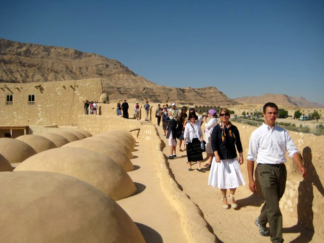 В воскресенье 1 июля молодые участники всезарубежного паломничества совершили поездку в Восточную пустыню, где посетили монастырь преподобного Антония Великого. Здесь паломников приветливо встретил и угостил отец Руис-Антоний, показавший им святыни обители и предложивший им испить воды из источника преподобного Антония. Отец Руис рассказал историю обители и повел в ее древнюю часть.
